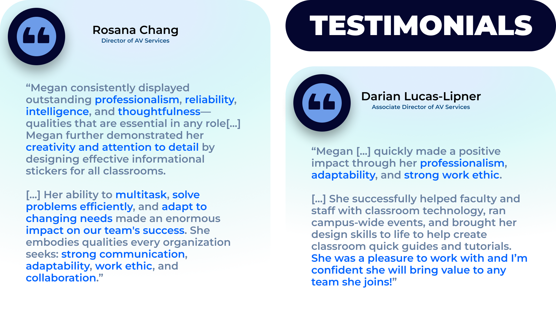 Out of 5 interviews with coworkers, managers, and faculty, I collected