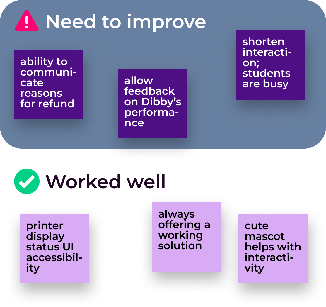 Dibby does not replace IT jobs. Our chatbot bridges the gap between students and IT staff, supporting clearer communication and creating actionable Trello tickets and big picture insights for our IT heroes. Dibby is low-cost and future-proof, requiring only a server to run on and minimal maintenance.
